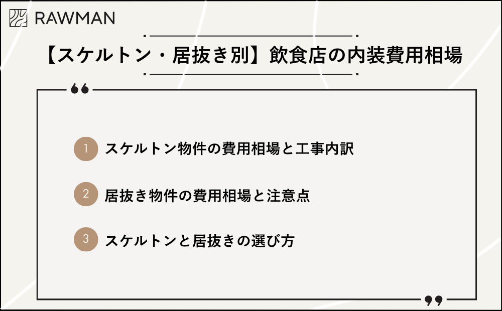 【スケルトン・居抜き別】飲食店の内装費用相場