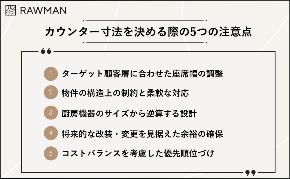 カウンター寸法を決める際の5つの注意点